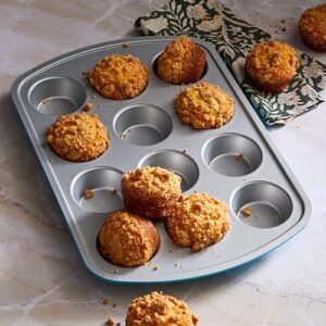 Ich backe ihn am liebsten in der Mini-Kuchenform oder der Brownieform deluxe. So kann ich für jeden individuell dekorieren, und die Portionen sind genau richtig – eines davon reicht wirklich! Wer den Kuchen für eine größere Runde backen möchte, verdoppelt einfach die Zutaten und nimmt eine Springform oder den mittleren Ofenzauberer Plus.
